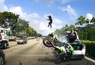 Mr Mohammad Wirman Saptu, 36, a sideloader operator at Jurong port, told The New Paper: "I heard a vroom sound, and the next moment, I saw a motorcycle crashing into a stationary white car.